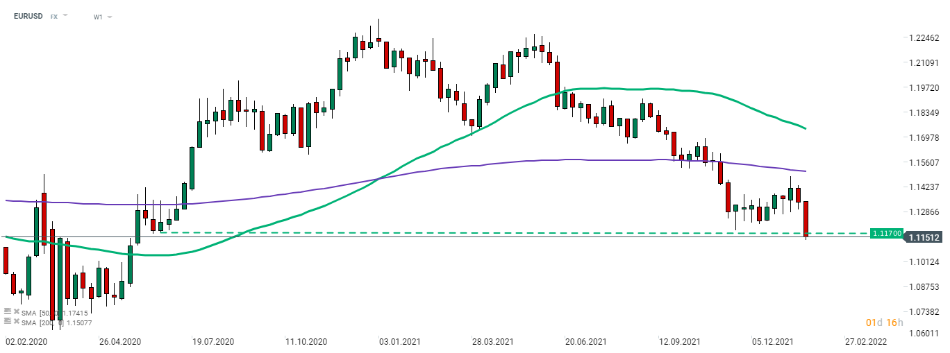 While the US dollar is one of the worst performing major currencies today, it was one of the top performers yesterday. EURUSD took a hit on USD strengthening and plunged below the 1.1200 handle. The main currency pair is now trading in the 1.1150 area - the lowest level since early-June 2020. Source: xStation5