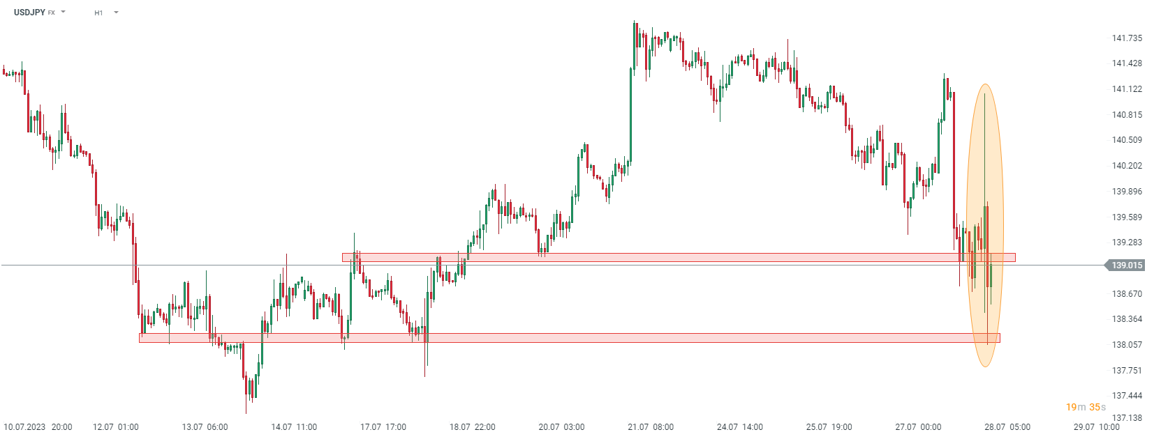 USDJPY experienced massive volatility following today's BoJ decision. Pair jumped in a knee-jerk move but gave back all of the gains later on and dropped below pre-decision levels. Source: xStation5
