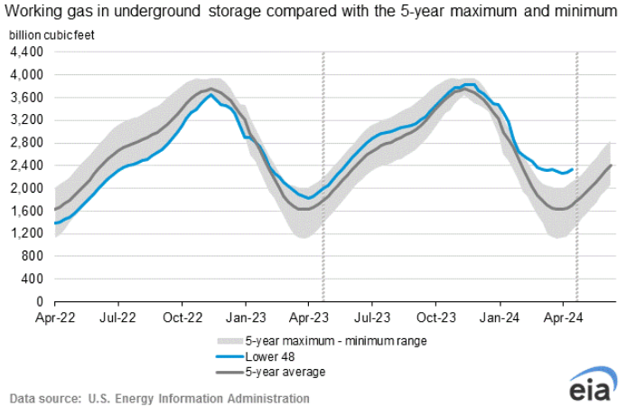 US natural gas inventories are still above the 5-year medium trend line. Źródło: EIA