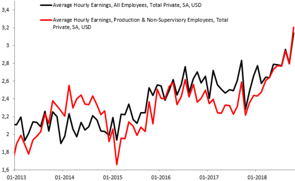 While the increase in wages was expected, this metric did rise strongly and is at its highest level in several years. Source: XTB Macrobond