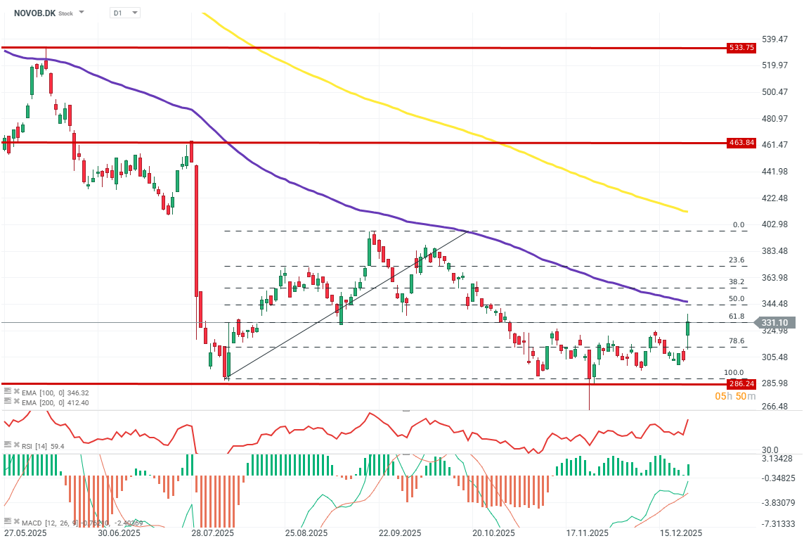 Novo Nordisk shares remain clearly below the peaks of a few years ago, but today's session is seeing solid gains. On the wave of news from the FDA, shares of the Danish pharmaceutical company are rising by over 9%.