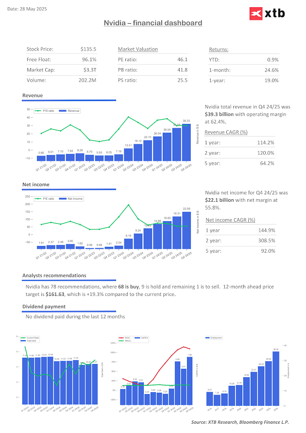 Looking at the valuation, we can see that Nvidia is definitely not a 'cheap stock' right now, however its business is still on the 'surge'. If the company, earnings show continued strength with no very negative surprises from margins (which will fall almost for sure due to Blackwell ramp-up), we can expect that Wall Street appetite for new ATH on Nvidia will persist.