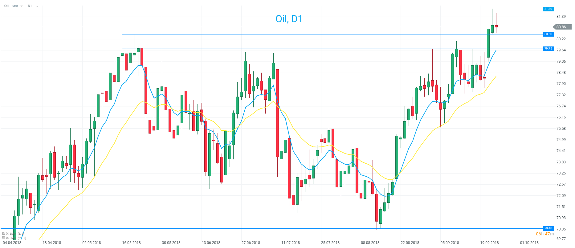 Oil has moved off its lows following the DOE release with the market holding support above 80.50. Last night’s API showed a larger build and even though price fell lower it soon recovered. Source: xStation