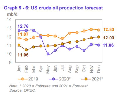 The last line shows the differences between global demand for crude oil and non-OPEC liquids production and the production of other barrel-equivalent oil products (NGL). This difference is called "OPEC oil demand". One can see that with the production level around 25 mbd, the potential deficit on the market may reach over 3 mbd. With such a strong deficit, a scenario where the price of oil rises to $ 100 a barrel is not out of the question, especially if US production does not rebound as expected. In addition, it is assumed that production will rebound in Norway, Brazil or also in Russia (although in this case OPEC assumes limited growth). There is therefore a chance that several factors will lead to a potential increase in the price of crude oil to around $ 100 per barrel. However, this is not the baseline scenario. We assume that OPEC will moderately increase production. However, at the moment everything indicates that the upward trend should be maintained, which may cause the price of Brent crude oil to rise to around $ 80 per barrel. However, such a high price level will be maintained artificially. Source: OPEC