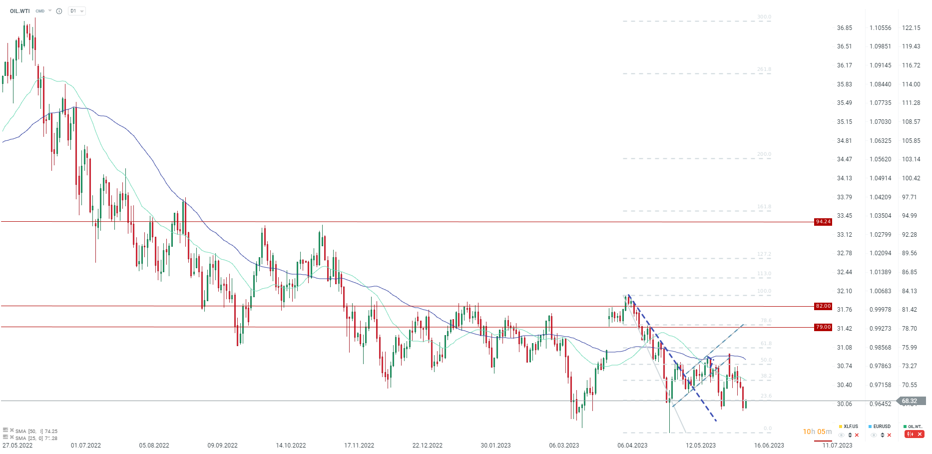 WTI bounced off the 23.6% retracement of the latest downward impulse. Source: xStation5