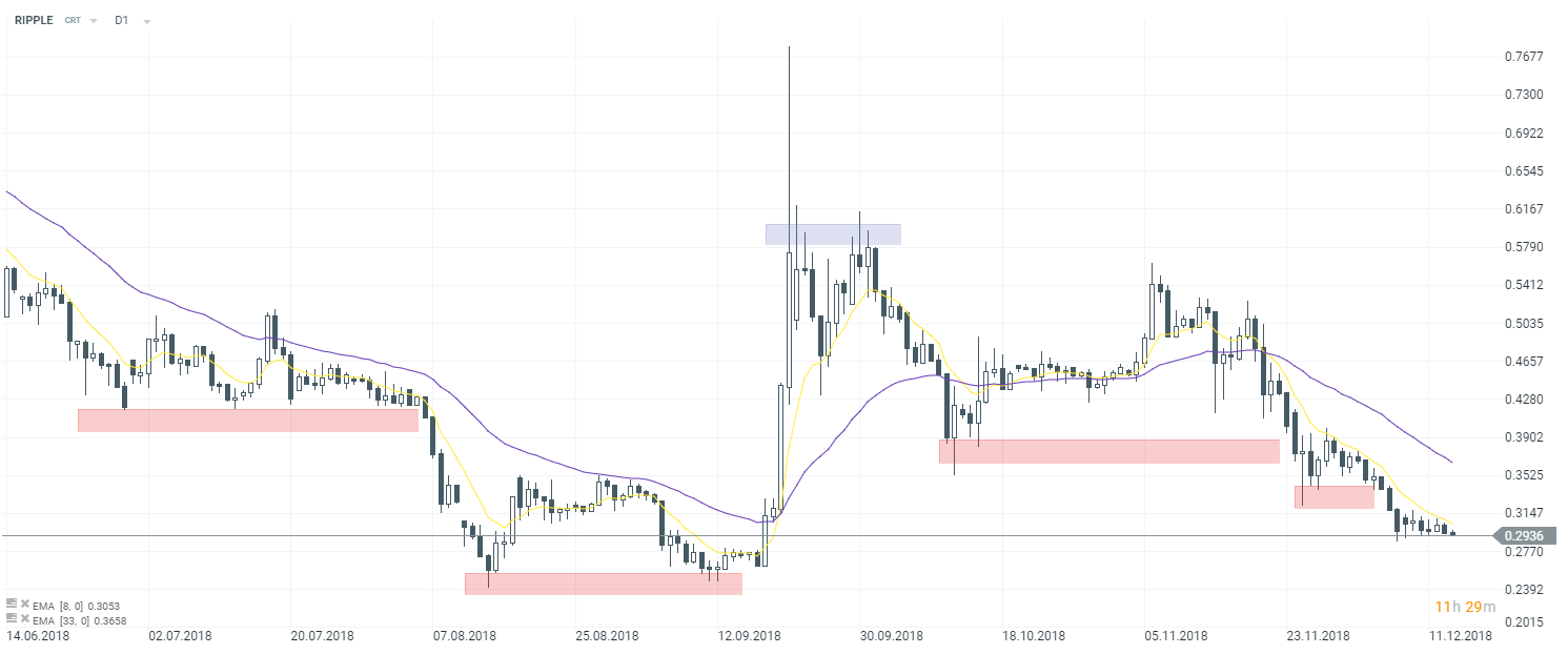 Ripple has decreased around 0.7% what has been the worst result among the three biggest virtual currencies thus far today. Source: xStation5