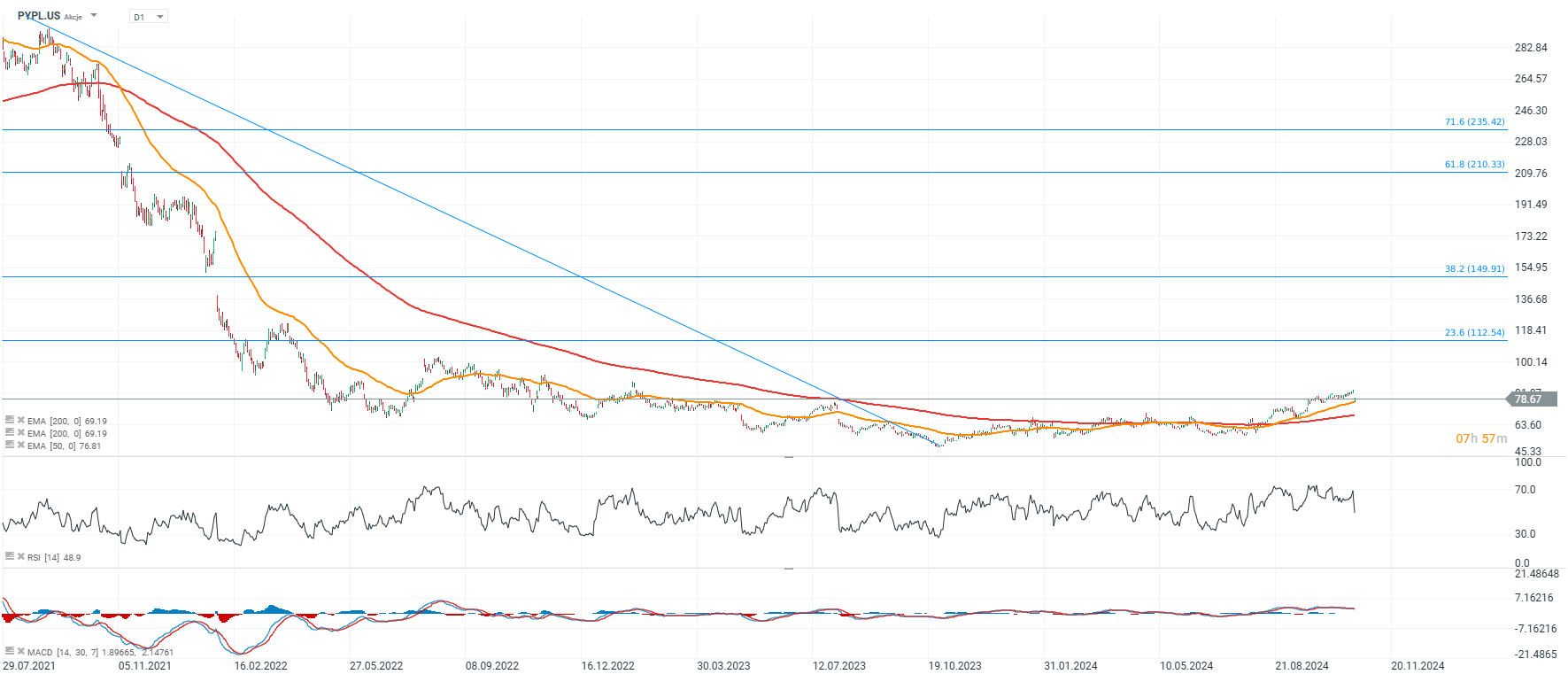 PayPal (PYPL.US) shares lose 3.5% today despite better than expected earnings per share and 6% YoY revenue growth, which came in line with expectations. The company reported EPS of $1.20, above $1.07 anticipated on Wall Street, however its profitability (and margins) boost was balanced by quite mixed guidance, signalling profit taking pressure. As for now, shares trim early loses of 8% to 3.5%, signalling that the first market's 'panic' reaction may be too big, as the PayPal Q3 report overall came in strong and signals some major improvements.
