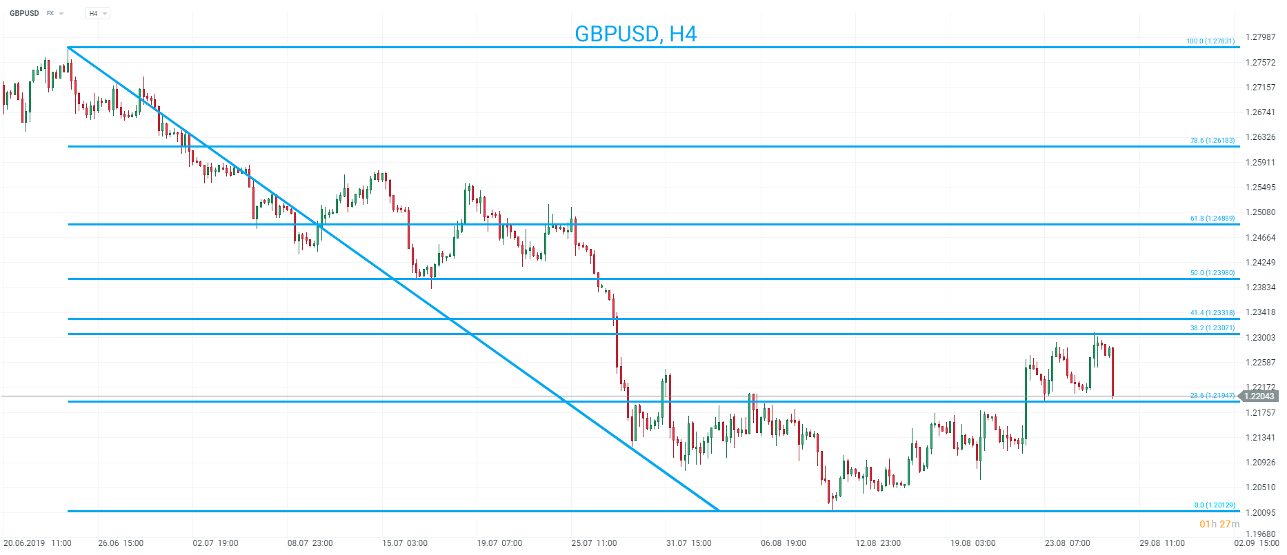 The pound had recovered a fair chunk of the declines seen since the June high, with price hitting the 38.2% fib at 1.2307 yesterday. However, the market is coming under pressure on these latest headlines and has fallen back near the 23.6% fib at 1.2195. Source: xStation