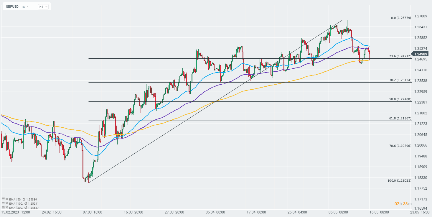 The British pound lost ground early in the European session following the publication of weak macro data from the UK, reducing the chance of a hawkish turn from the Bank of England. The reading for March showed that the unemployment rate in the UK rose to 3.9% against an expected 3.8% and an earlier reading of 3.8%. What's more, the negative overtones of the publication were provided by a big jump in unemployment claims, which came in at 46.7 thousand against an earlier reading of 26.5 thousand (today's reading beat analysts' expectations by more than 49%. Wage growth excluding bonuses is also down and came in at 6.7% y/y vs. the expected 6.8% y/y. At the moment, the money market is pricing in a 30% chance of a halt to the hike cycle at the upcoming BoE meeting in June.