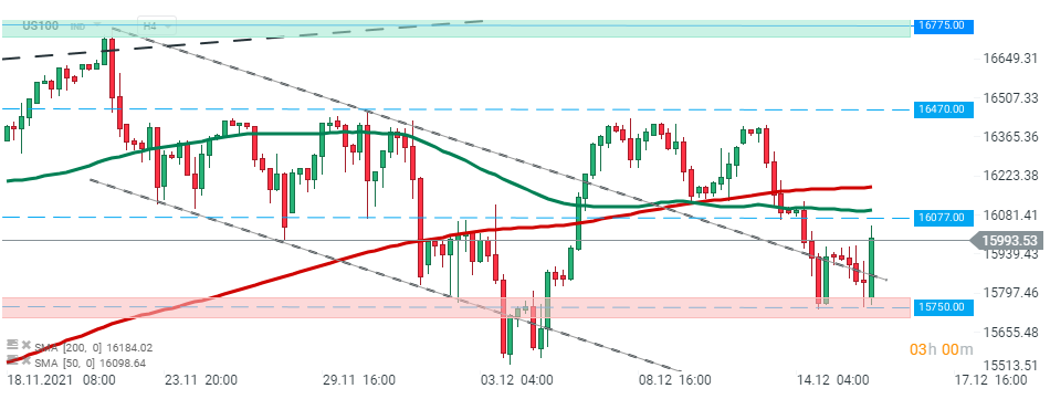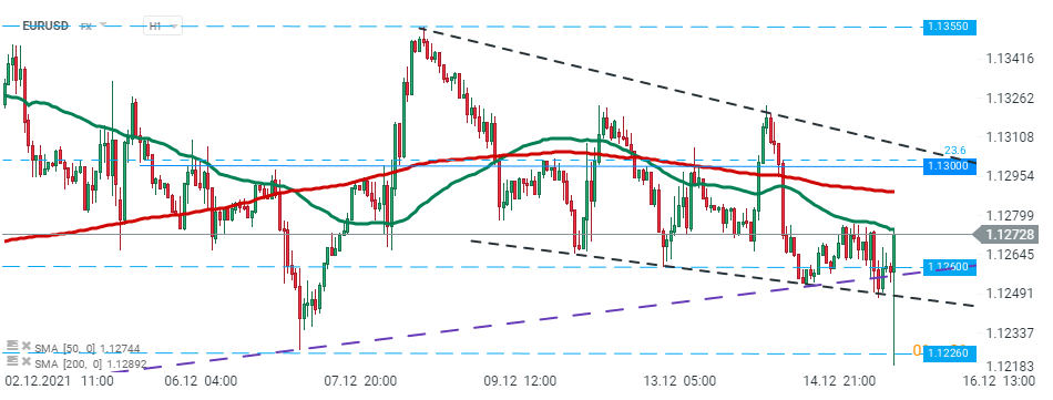 EURUSD - initially currency pair fell, however buyers manage to quickly regain control and price is testing the 50 SMA (green line). Source: xStation5