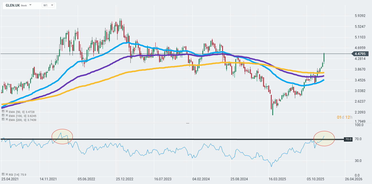 European stock markets are buzzing with rumours of a mega-merger. Rio Tinto (RIO.UK) and Glencore (GLEN.UK) have resumed merger talks that would create the world's largest mining entity, worth over $200 billion. This is the second attempt – the first in 2024 fell through due to valuation disputes. Now, however, conditions are better: copper is breaking records (over $13,000 per tonne) and the entire sector is experiencing a raw materials frenzy. The key deadline for the entire transaction is 5 February. By that date, Rio must confirm the offer or withdraw for six months.