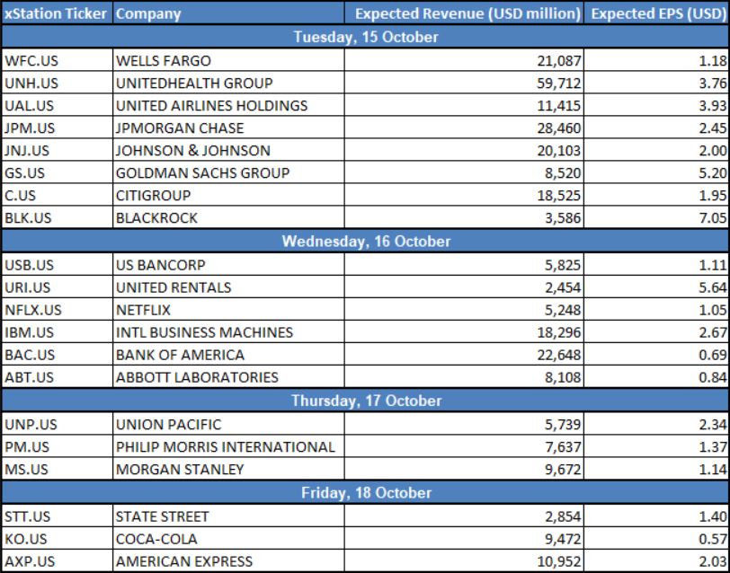 Major companies scheduled to report earnings during the first few days of the season. Source: Bloomberg, XTB Research