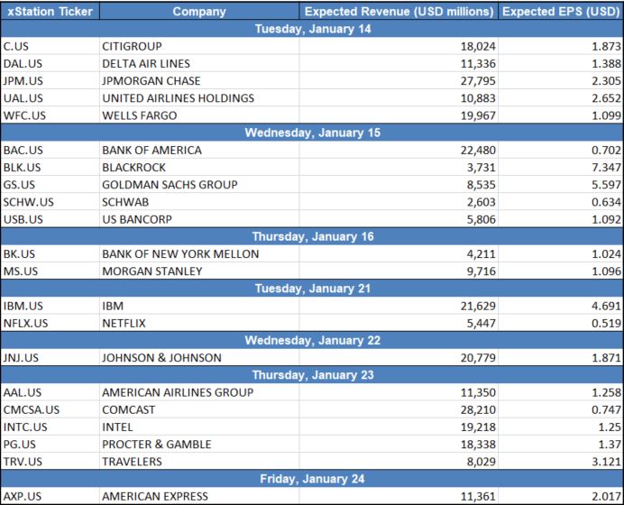 Interesting earnings releases scheduled for the next two weeks. Source: Bloomberg, XTB Research