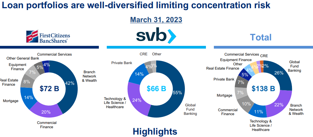 As a result of acquisition, assets of First Citizens jumped above $200 billion, making it one of 15 largest US banks. Also, the combination of First Citizens and SVB created a banking entity with a much more diversified loan portfolio than either of the two had prior to the acquisition. However, while deposit and loan gains from SVB acquisition were massive, First Citizens may struggle to maintain SVB's clients as it will need to convince them that it is proficient enough and has enough expertise to properly serve clients from tech and life science industries, which were the focus of SVB. The same can be said about SVB employees, it was already reported that HSBC hired over 40 former SVB bankers who worked at First Citizens.