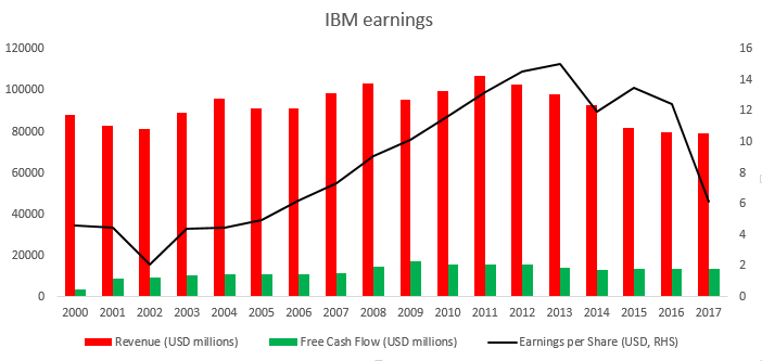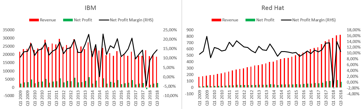 Apart from that, there is a number of juicy facts concerning Red Hat that make IBM especially interest in this deal. Most importantly, Red Hat is one of the few companies operating in the open-source software business that is able to constantly improve its sales and provide positive free cash flow. While IBM was experiencing quite solid free cash flows it struggled with revenues in the past couple of years. After the deal is completed (second half of 2019 is the expected deadline) Red Hat will continue to operate as one of IBM’s business segments. However, IBM said that it wants Red Hat to keep its headquarters, brands and practices. As we mentioned before numerous companies decided to acquire smaller entities operating in the cloud industry. Companies other than IBM were also said to be interested in acquiring Red Hat and that may be the main reason for significant premium offered by IBM. IBM announced on Sunday that it will buy Red Hat for $190 per shares, implying a 63% premium over Friday’s closing price. In turn the deal is worth aforementioned $34 billion and is the second biggest acquisition of technology company (Dell acquisition of EMC was worth $67 billion).