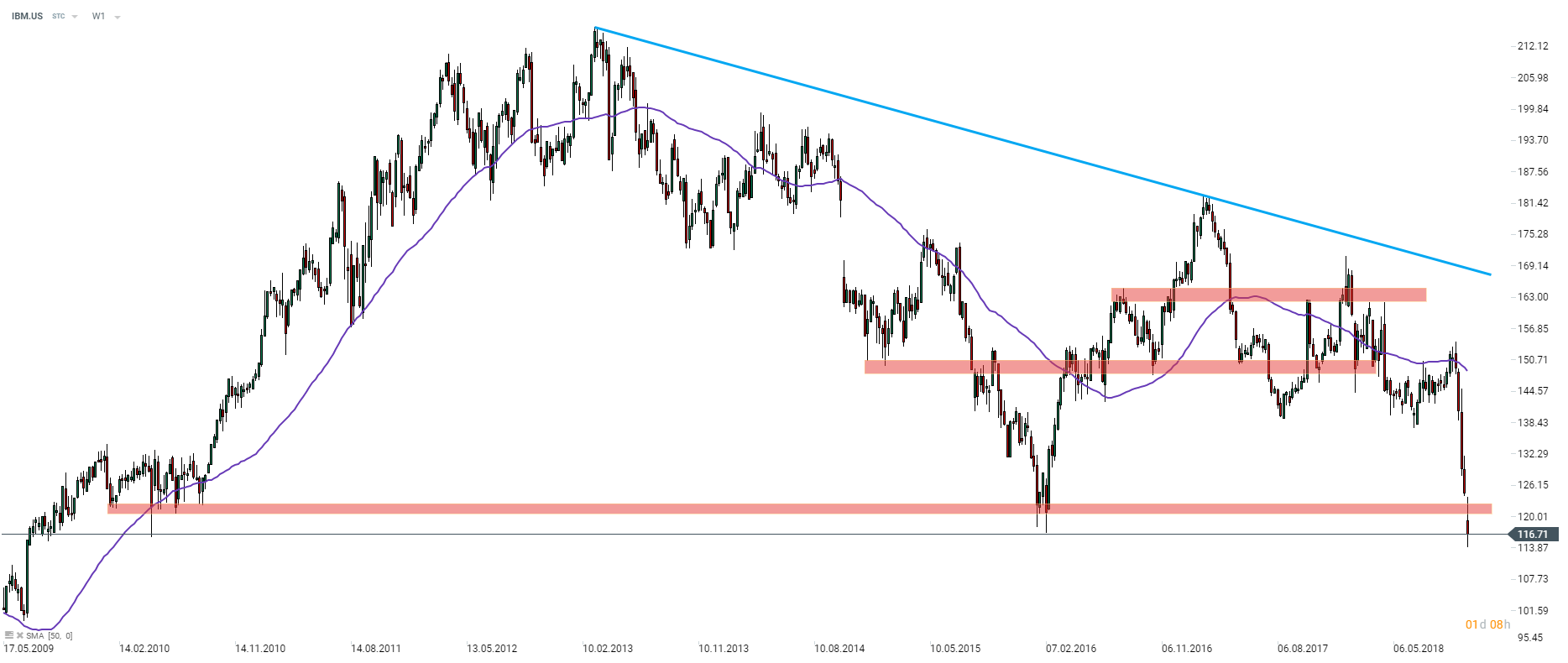 IBM (IBM.US) share price plunged severely following the release of the latest earnings report. As lacklustre revenue in cloud business was one of the major reasons behind a drop the Red Hat acquisition may help boost sentiment towards the company. Source: xStation5