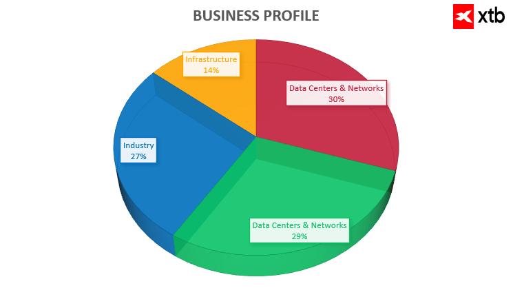 The first is buildings, including offices, hotels, shopping centers, and other commercial real estate. Here, the company provides systems that help manage energy consumption and improve efficiency. The second and currently fastest-growing segment is data centers and networks. This is where the impact of artificial intelligence is most visible. Every new AI project requires more advanced and more energy-intensive infrastructure. The third segment is industry. Manufacturing companies are increasingly investing in automation and digitalization to improve productivity and efficiency. The fourth is infrastructure, including power systems, transmission networks, and large-scale modernization projects.