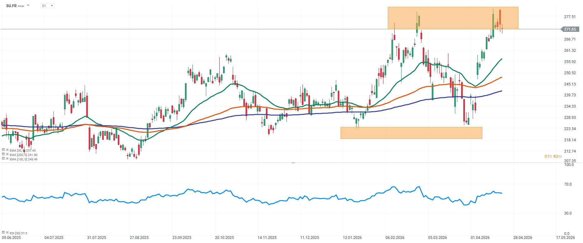 From a fundamental perspective, this structure is consistent with the company’s performance. Schneider Electric operates in an environment of rising demand for energy, automation, and data center infrastructure, which translates into stable demand and solid revenue growth prospects.