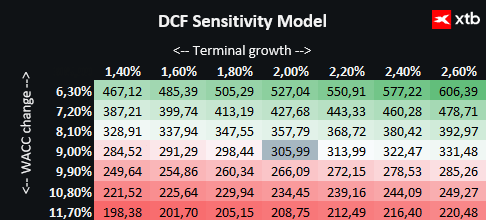 The valuation is based on a base case scenario of projected revenues and earnings, incorporating continued growth in data centers, infrastructure, and industrial automation. The assumptions regarding cost of capital (WACC) and long-term growth are conservative and reflect a stable yet still expanding business profile.