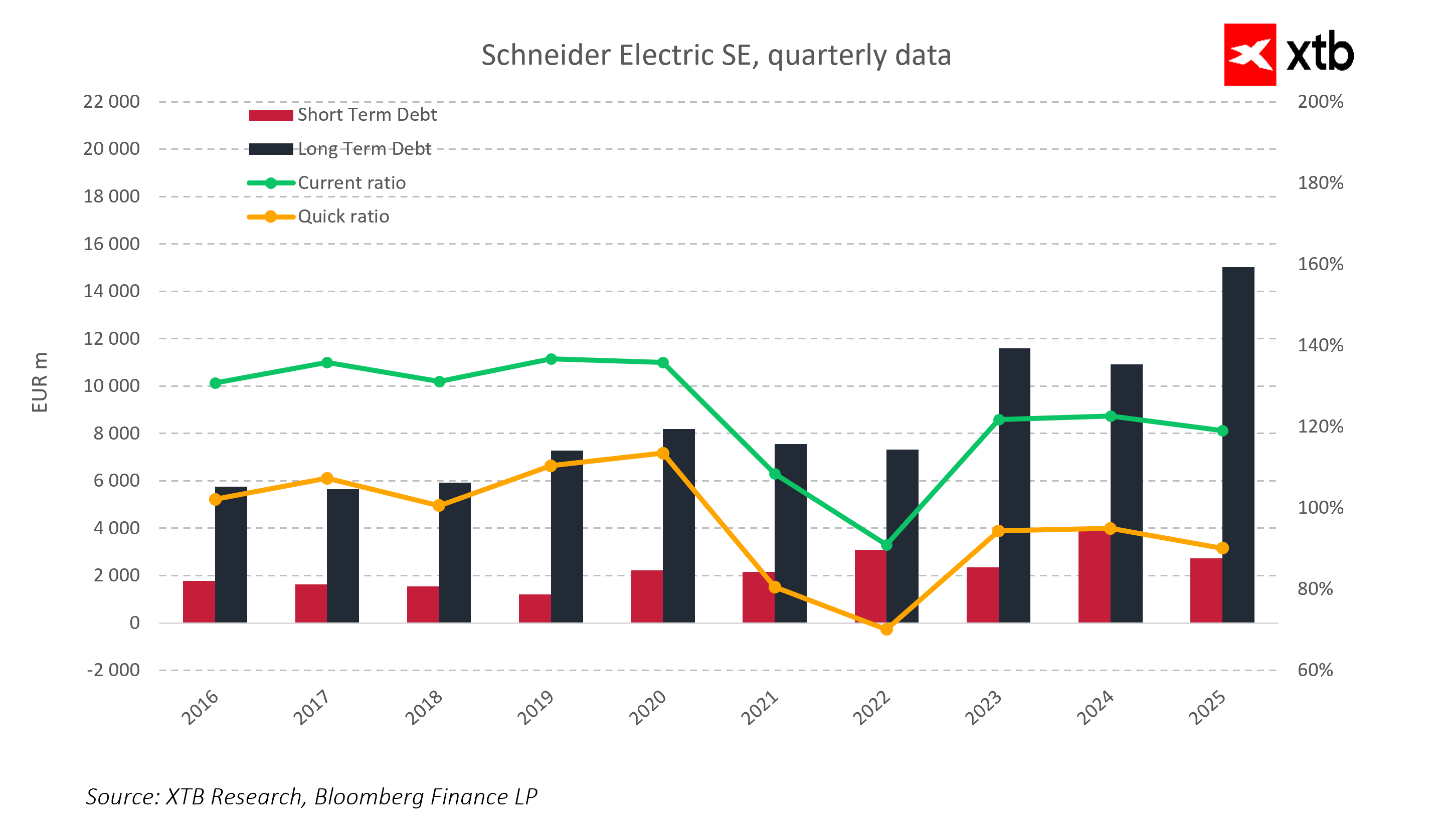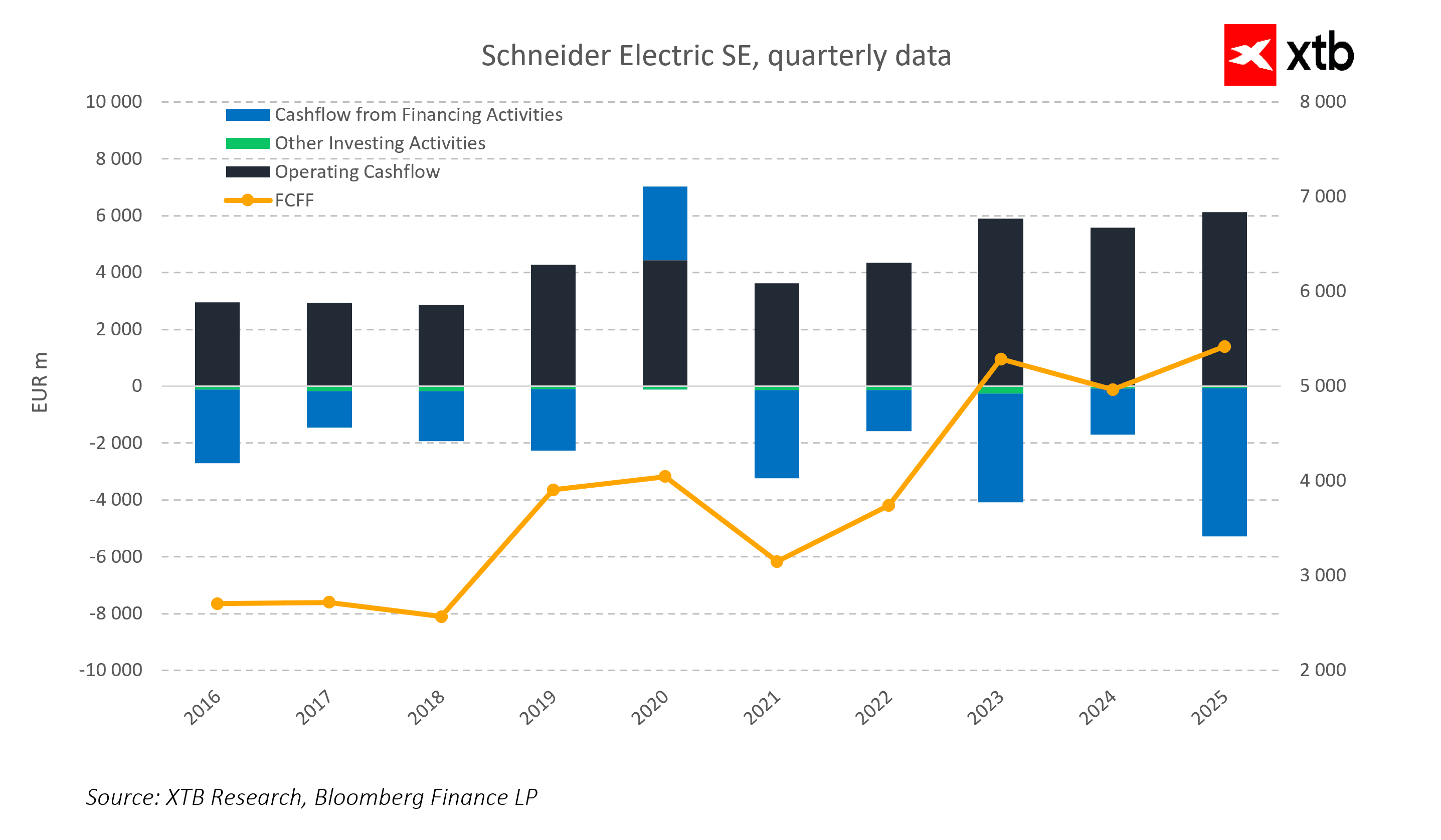 Schneider Electric is a global leader in energy management and automation technologies, benefiting from long-term structural trends such as digitalization, electrification, artificial intelligence, and rising investment in data center and power infrastructure. The company combines hardware, software, and services, which enables it to generate stable cash flows and an increasing share of recurring revenue.