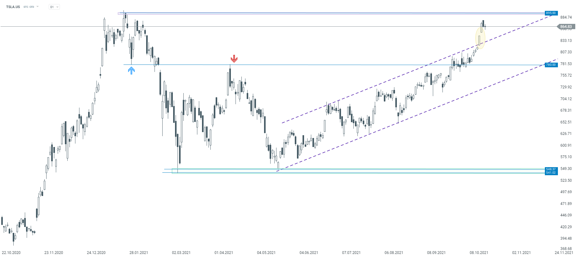 Tesla (TSLA.US) traded lower in the after-market session following the release of the Q3 2021 earnings report. This can come as a surprise as results released by the US electric vehicle manufacturer were really good. Nevertheless, stock continues to close to it's all-time highs in the $900 area and a move to fresh records cannot be ruled out in the coming days given how volatile Tesla's shares tend to be. Let's take a closer look at Q3 results from the company.