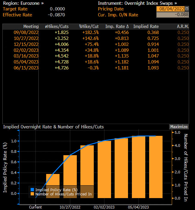 The market is still expecting a 100bp hike by the end of this year, but at the same time it does not price in the full 50 bp hike in September. Source: Bloomberg