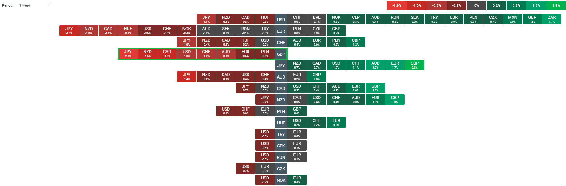 The pound is rising once more with gains seen on the week across the board. The largest appreciation can be seen against the JPY and NZD. Source: xStation