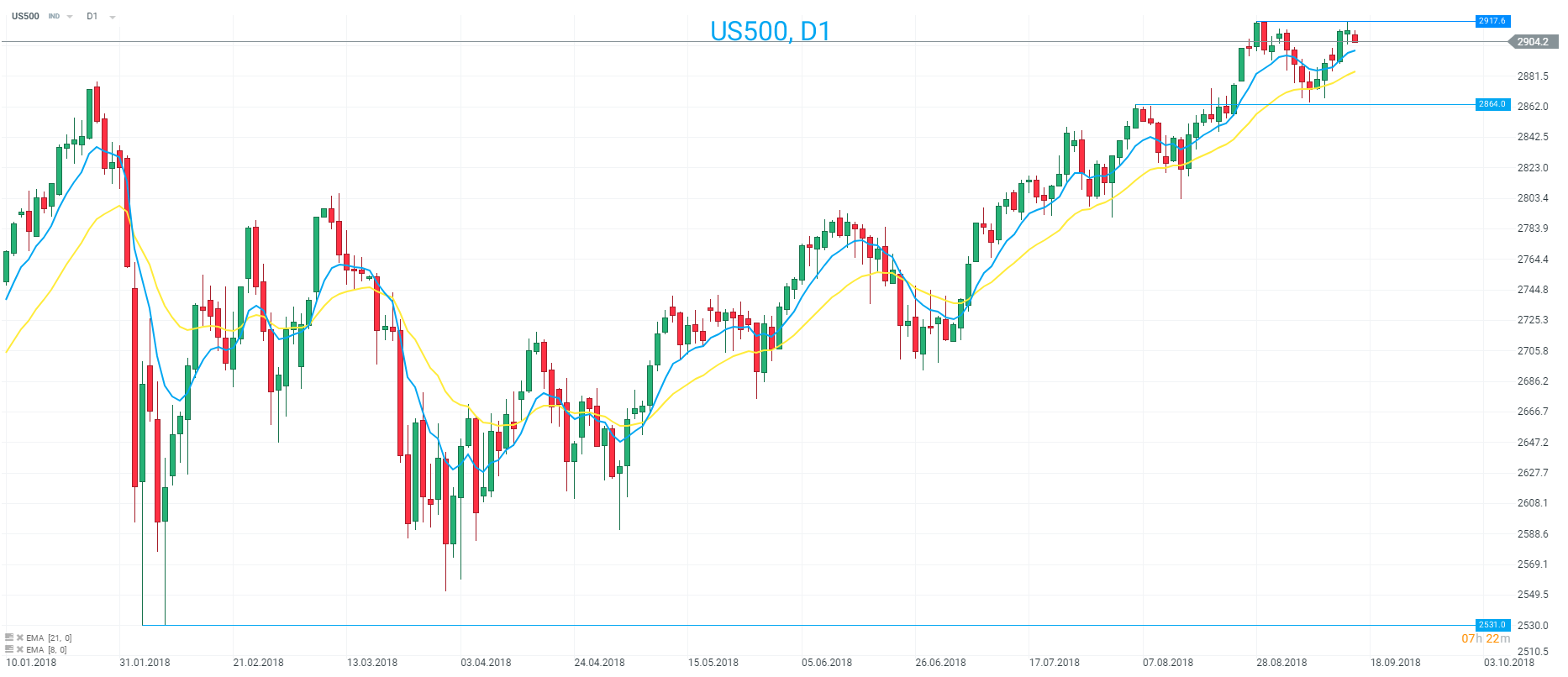 The bigger picture for US indices remains positive with the US500 remaining in a clear uptrend as shown by the EMAs. The pullback in the 21 EMA last week provided a good buying opportunity and while a possible double top could be forming at 2917 the path of least resistance appears to remain higher. Recent lows of 2864 could be seen as key support and unless there is a clear break below here then the price action continues to favour the bulls. Source: xStation