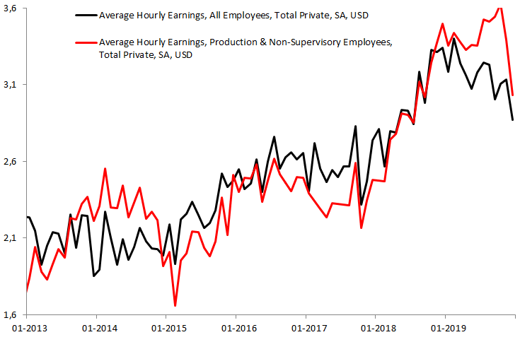 Declining wage growth could be a bigger concern. Expected at 3.1% it dipped to 2.9% y/y, showing a continuation of negative trend, this time augmented by production workers. If this reflects more cautious approach from the business it could spell a lasting slowdown. However, it also leaves room for the Fed to keep supporting the economy and that’s been the prime argument for the markets. Little wonder that a reaction to the report was very much muted.