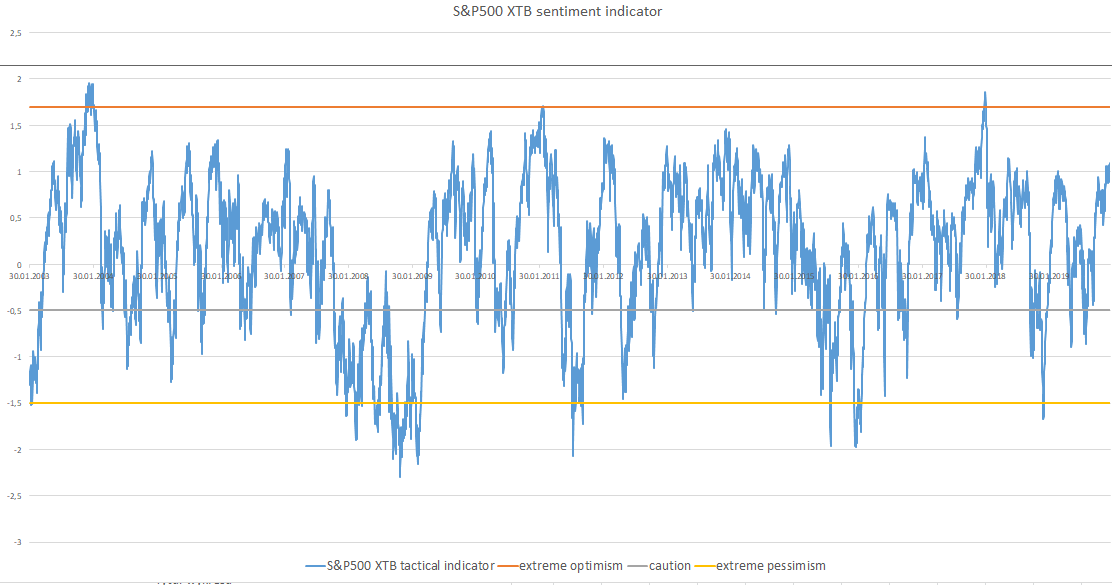 One would think that with such a rally, sentiment would be sky high. Our contrarian index is indeed the highest since June 2018 but still not even close to highs from January 2018. One of the reasons is Bull/Bear ratio that moved back nearly to balance impacted by the Middle East tensions (the survey is updated weekly on Thursdays). Source: Bloomberg, XTB Research