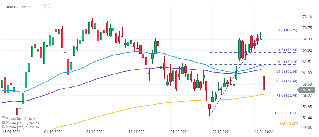 Today begins the period of publishing financial results by major banks and other financial institutions. JP Morgan (JPM.US) Citigroup (C.US), Wells Fargo (WFC.US) and BlackRock (BLK.US) released their results before the start of trading in the US today. The banks delivered better revenue results than analysts had expected, but EPS ratios for individual institutions were rather mixed. Before the US market opened, JPM.US shares lost nearly 4.5%, WFC.US gained 1%, C.US dived 4% and BLK.US lost 2.3%. As a reminder: