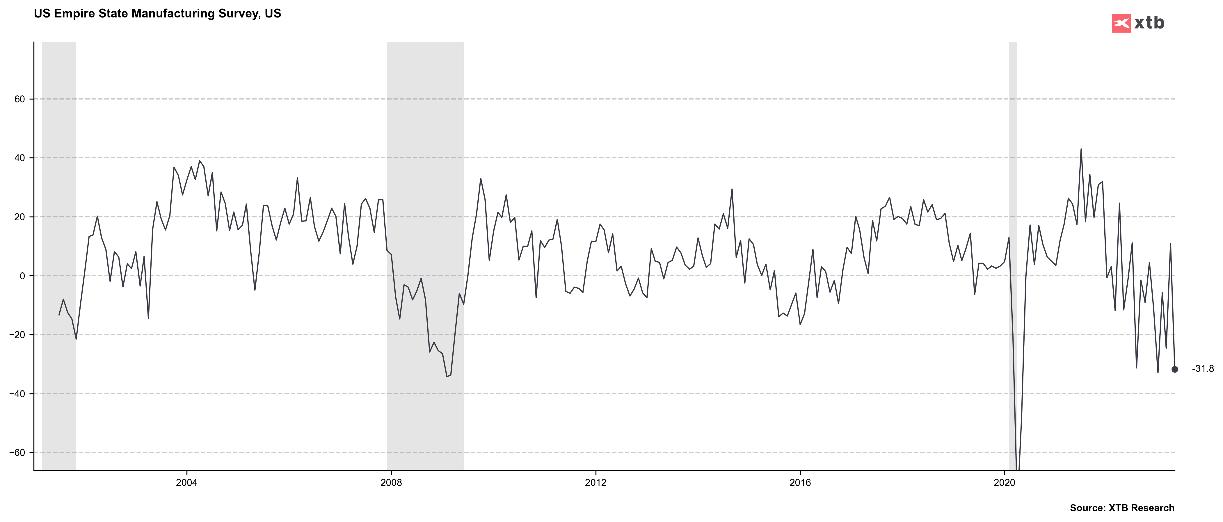 The New York Fed manufacturing index for May was released today at 1:30 pm BST. Release was closely watched as this index surprised with a big jump last month and clearly stood out among other regional indices. Market expected report to show -2.5 after 10.8 reported for April. However, actual data showed a massive slump to -31.8! This was the lowest reading since January 2023 and the largest single month drop since April 2020.