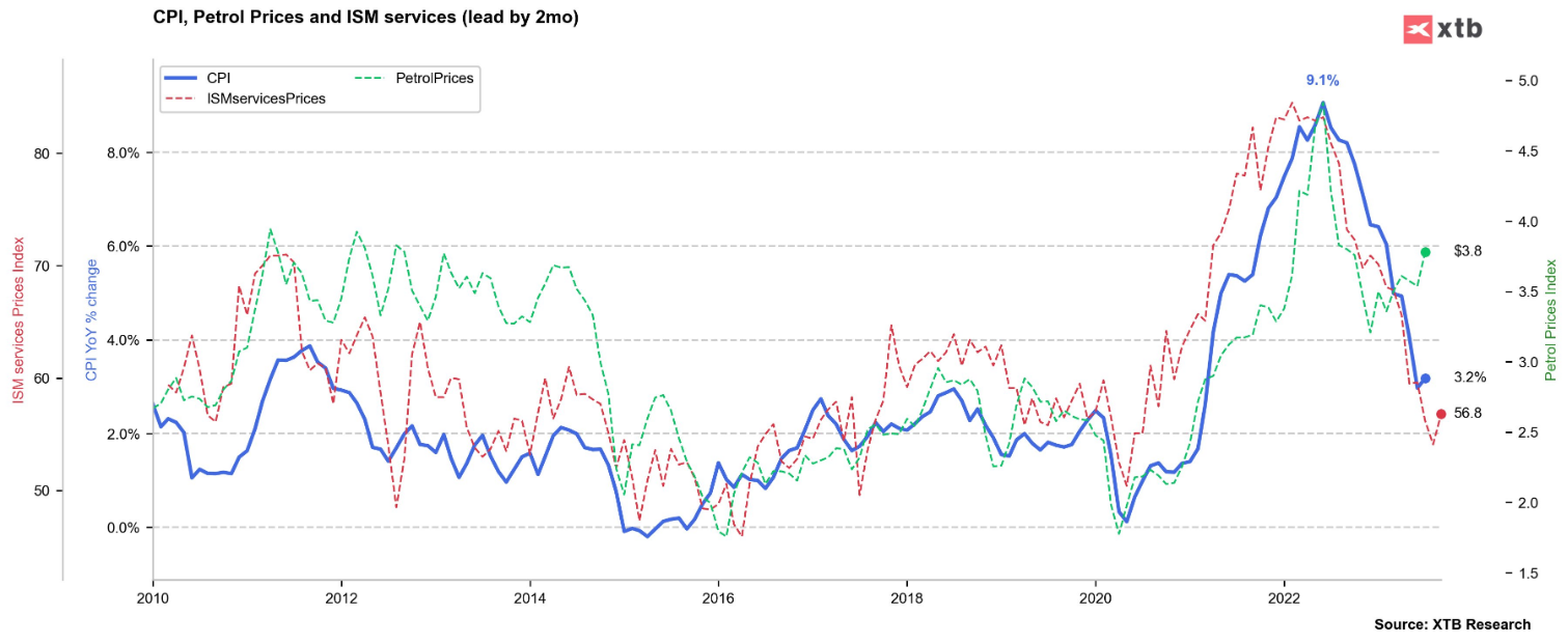 U.S. CPI inflation was 3.2% y/y, core inflation fell to 4.7% y/y. Monthly growth was 0.2% m/m in line with expectations. The rebound was mainly related to a lower base from last year. Source: xStation5
