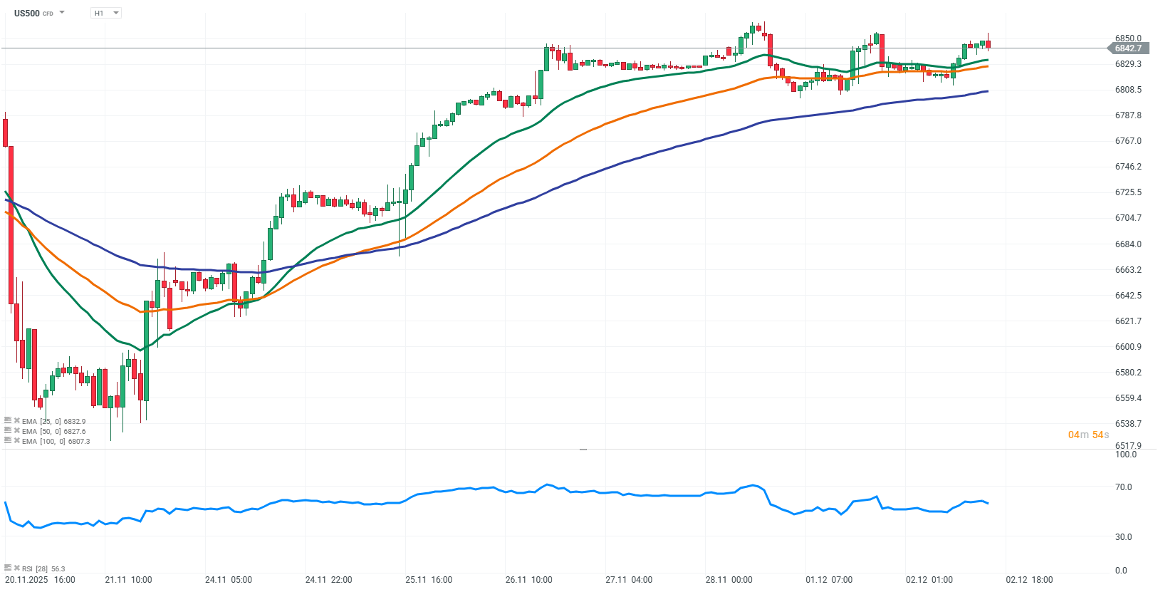 Additional pressure came from yesterday’s ISM Manufacturing PMI data, which showed that the U.S. industrial sector is again contracting. In November, the PMI stood at 48.2 points, down from 48.7 in October, marking the ninth consecutive month of weakening activity. Particularly concerning were declines in new orders, which fell to 47.4 points, and in the employment sub-index, which dropped to 44.0 points. At the same time, the prices index rose to 58.5 points, indicating growing cost pressures despite weakening demand.