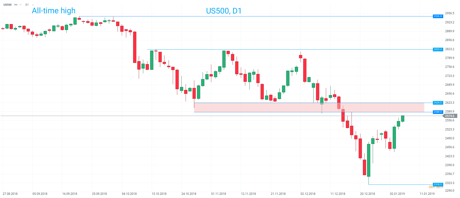 The US500 is approaching possible resistance in the 2589-2624 region after a strong rally of over 250 points in just 9 days! Source: xStation