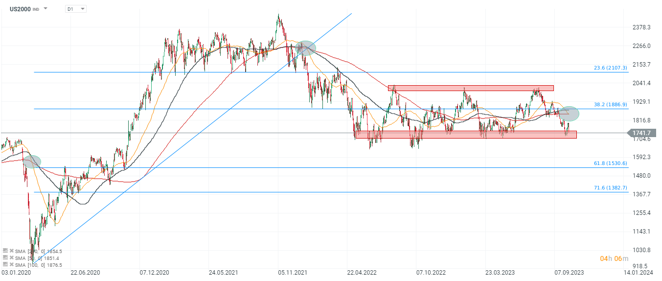 Looking at US2000 we can see that SMA200 (red line) and SMA (50) formed bearish 'death cross' formation. Source: xStation5