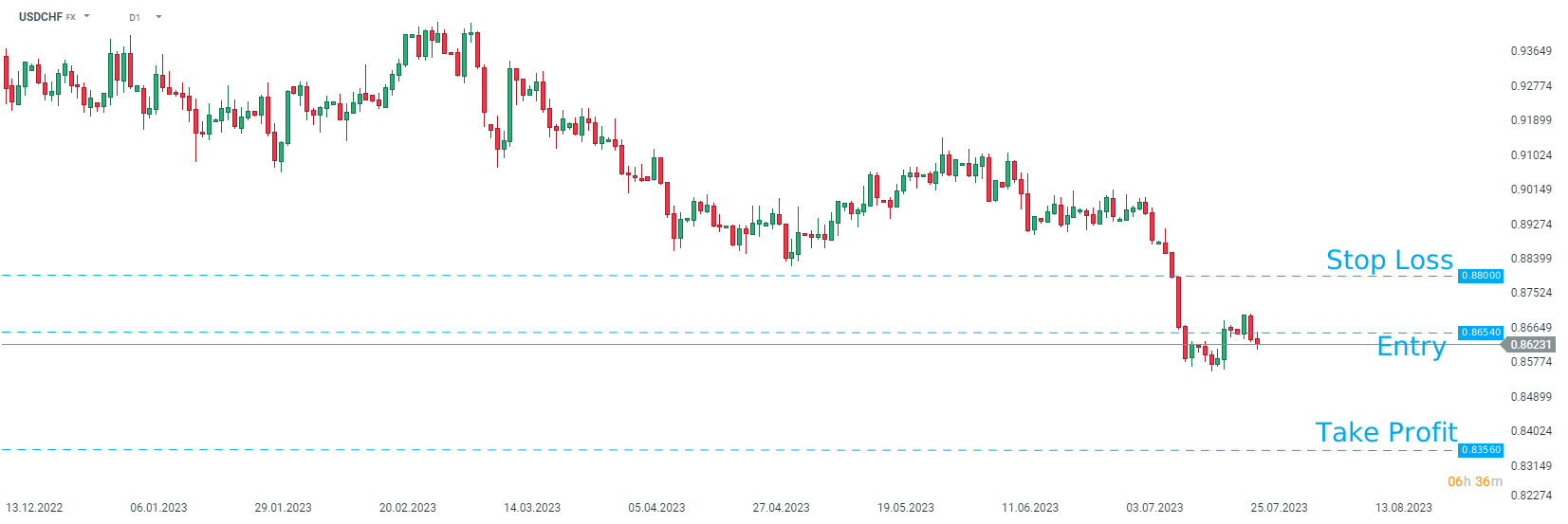 Credit Agricole recommends taking a short position on USDCHF at market price with a target of 0.8356 and a stop loss placed at 0.8800. Source: xStation5