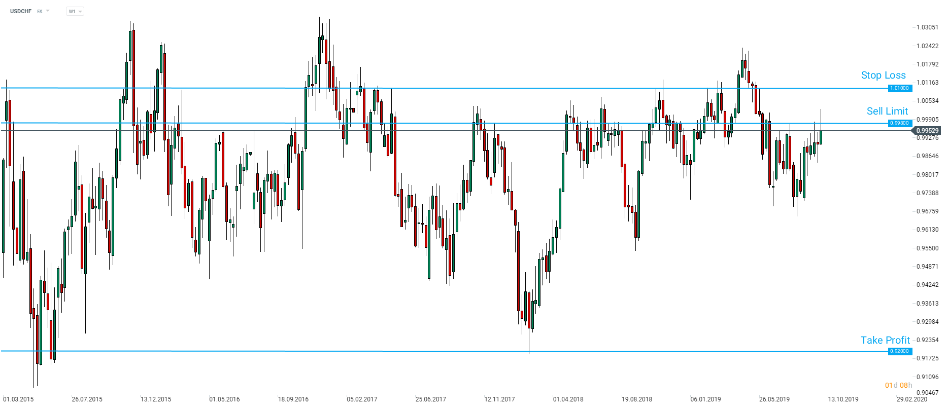 Morgan Stanley recommends taking a short pending position on USDCHF with a limit order at 0.9980, a target of 0.9200 and a stop loss order placed at 1.0100. Source: xStation5