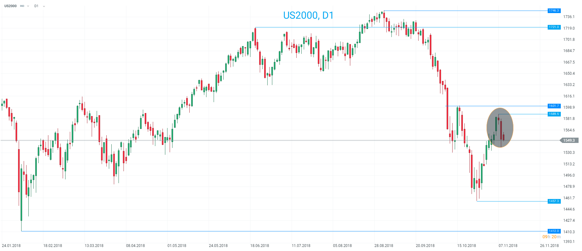 The US2000 is back below where it traded when the Midterm results were announced and has printed an evening star on the D1 chart. This market led the way lower for the US500 last month and could be seen as a possible warning sign to US500 longs. Source: xStation