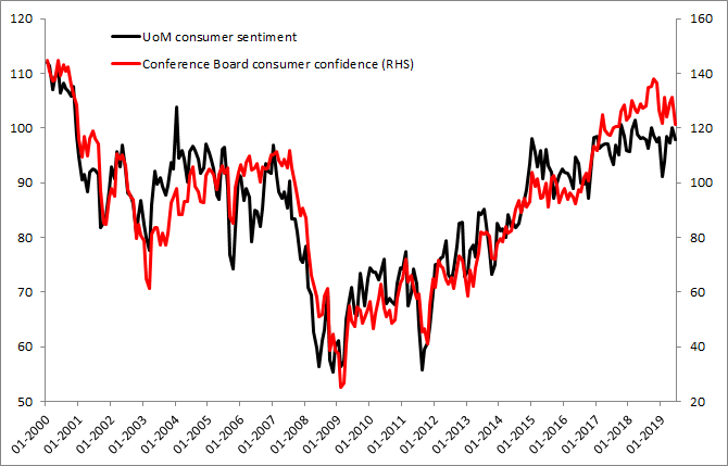 CB consumer sentiment index dipped in June to the lowest level since Q3 2017 and exerted more pressure on the USD. Apart from that, the second consecutive drop in the new home sales does little to cheer market participants. Source: Macrobond, XTB Research
