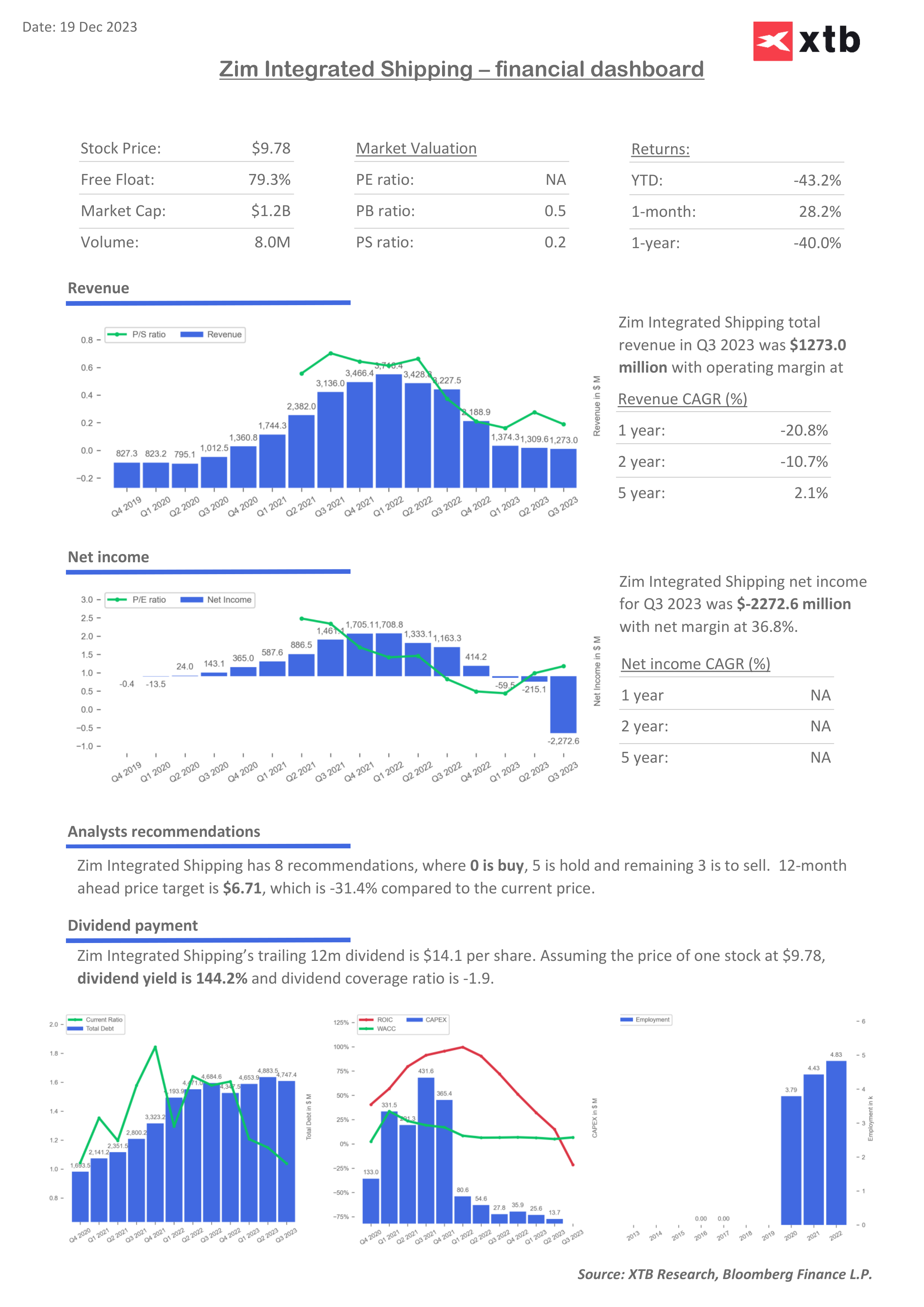 ZIM - financial dashboard and expectations