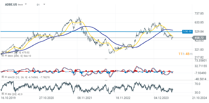 Le azioni Adobe (ADBE.US) guadagnano il 15,60% nel pre-mercato a 530 dollari per azione.