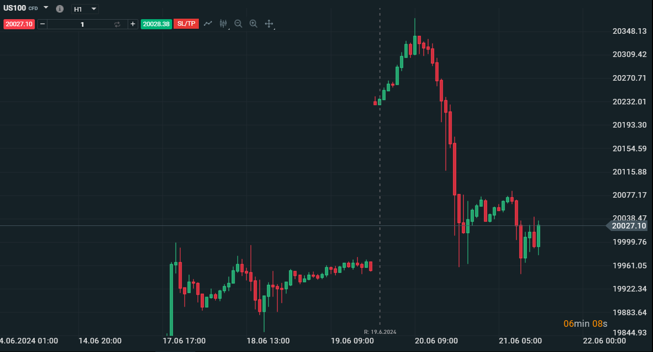 Dinamica del Nasdaq su base oraria - Fonte:XStation