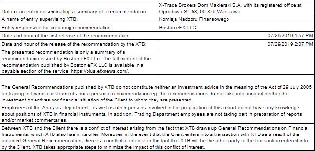 Questo materiale è una comunicazione di marketing ai sensi dell'Art. 24, paragrafo 3, della direttiva 2014/65 / UE del Parlamento europeo e del Consiglio, del 15 maggio 2014, relativa ai mercati degli strumenti finanziari e che modifica la direttiva 2002/92 / CE e la direttiva 2011/61 / UE (MiFID II). La comunicazione di marketing non è una raccomandazione di investimento o informazioni che raccomandano o suggeriscono una strategia di investimento ai sensi del regolamento (UE) n. 596/2014 del Parlamento europeo e del Consiglio, del 16 aprile 2014, relativo agli abusi di mercato (regolamento sugli abusi di mercato) e che abroga la direttiva 2003/6 / CE del Parlamento europeo e del Consiglio e direttive della Commissione 2003/124 / CE, 2003/125 / CE e 2004/72 / CE e regolamento delegato (UE) 2016/958 della Commissione, del 9 marzo 2016, che integra il regolamento UE) n. 596/2014 del Parlamento europeo e del Consiglio per quanto riguarda le norme tecniche di regolamentazione per le disposizioni tecniche per la presentazione obiettiva di raccomandazioni di investimento o altre informazioni che raccomandano o suggeriscono una strategia di investimento e per la divulgazione di particolari interessi o indicazioni di conflitti di interessi o qualsiasi altra consulenza, anche nell'ambito della consulenza sugli investimenti, ai sensi della legge sugli strumenti finanziari del 29 luglio 2005 (ad es. Journal of Laws 2019, voce 875, come modificata). La comunicazione di marketing è preparata con la massima diligenza, obiettività, presenta i fatti noti all'autore alla data di preparazione ed è priva di elementi di valutazione. La comunicazione di marketing viene preparata senza considerare le esigenze del cliente, la sua situazione finanziaria individuale e non presenta alcuna strategia di investimento in alcun modo. La comunicazione di marketing non costituisce un'offerta di vendita, offerta, abbonamento, invito all'acquisto, pubblicità o promozione di strumenti finanziari. XTB S.A. non è responsabile per eventuali azioni o omissioni del cliente, in particolare per l'acquisizione o la cessione di strumenti finanziari. XTB non si assume alcuna responsabilità per qualsiasi perdita o danno, anche senza limitazione, eventuali perdite, che possono insorgere direttamente o indirettamente, intrapresa sulla base delle informazioni contenute in questa comunicazione di marketing. Nel caso in cui la comunicazione di marketing contenga informazioni su eventuali risultati relativi agli strumenti finanziari ivi indicati, questi non costituiscono alcuna garanzia o previsione relativa ai risultati futuri. Le prestazioni passate non sono necessariamente indicative dei risultati futuri, e chiunque agisca su queste informazioni lo fa interamente a proprio rischio.