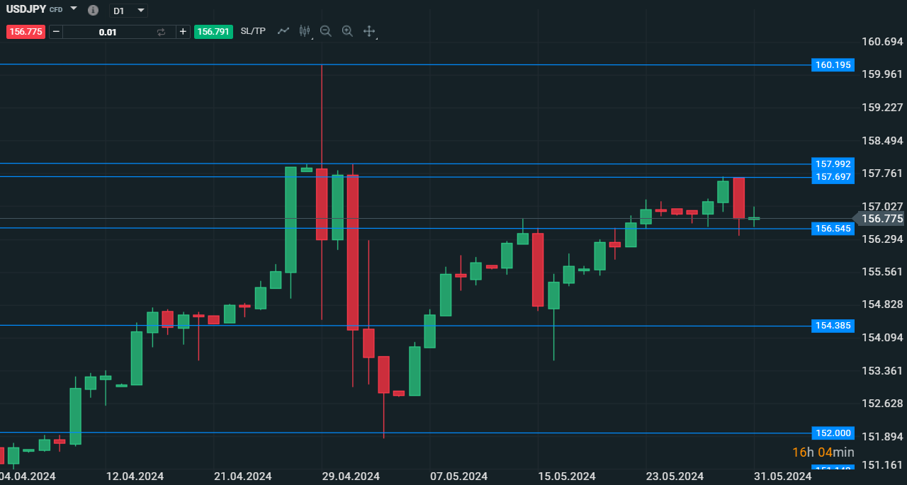 Il framework rilasciato dalla Bank of Japan il 19 marzo é stato chiaro, se i tassi di interesse a lungo termine (titoli di Stato a 10 anni) dovessero salire in modo rapido, saranno previsti interventi di acquisto non programmati da parte della banca centrale. Questo é quanto dichiarato dalla BoJ, pertanto il mercato aspetta solamente che la banca centrale intervenga sui titoli di Stato giapponesi che si trovano ora al di sopra della soglia del 1%. Ieri abbiamo raggiunto l'1,10% mentre stamani si batte l'1,065% di rendimento. Il mercato fornisce un assist alla BoJ per intervenire sul mercato obbligazionario, mossa che potrebbe portare anche ad un apprezzamento dello Yen che con il cambio UsdJpy ha visto ieri un forte ribasso in sessione asiatica. Per quanto riguarda UsdJpy la situazione tecnica ha visto un forte ribasso nella giornata di ieri dai 157,70, livello prossimo ai 158 che é stato l'ultimo livello di intervento della BoJ direttamente sul mercato. Non si esclude che oggi potremmo vedere un proseguimento del ribasso iniziato ieri.