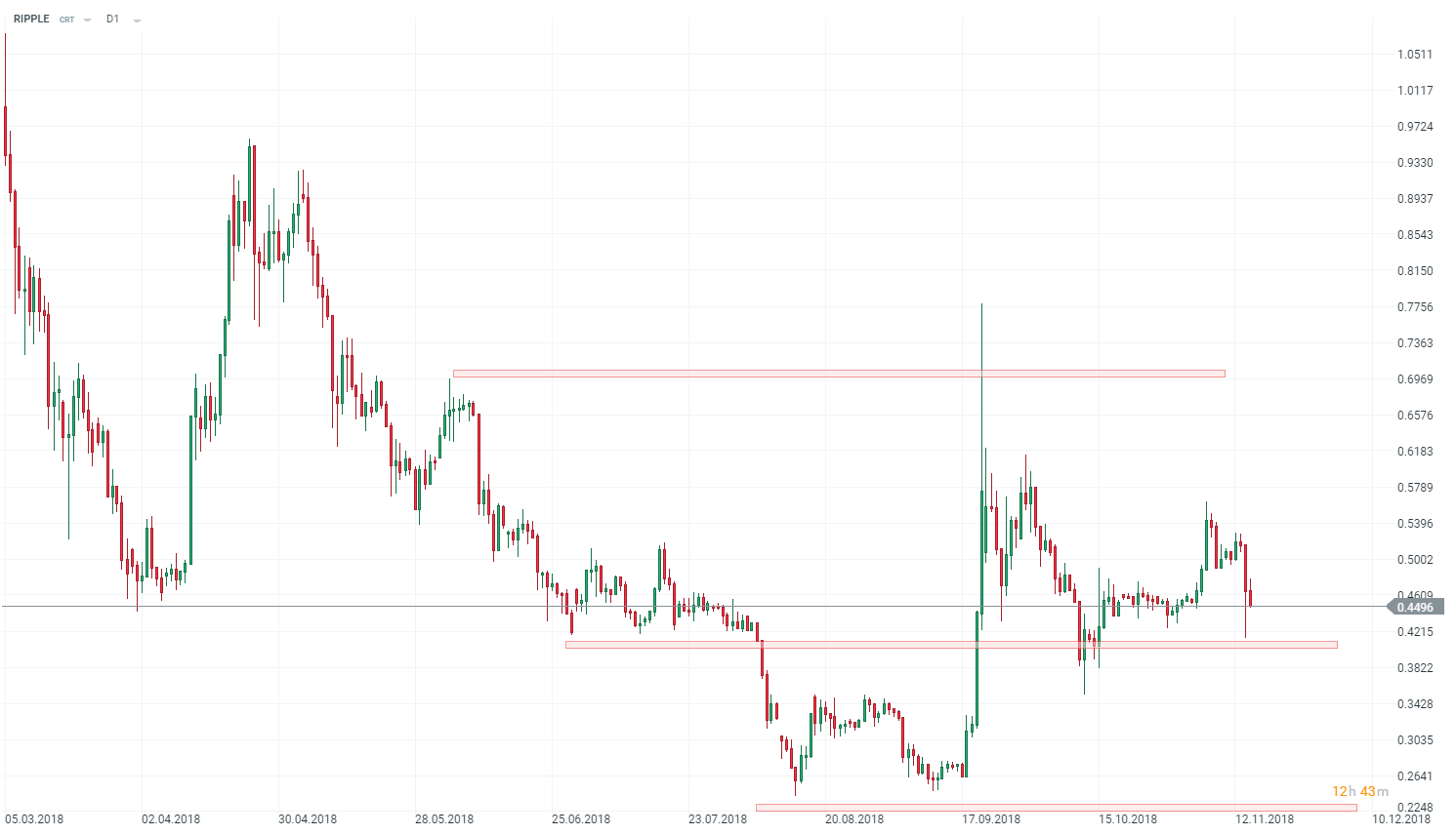 Il ripple è in calo ma è una delle poche valute a reggere nonostante una grande debolezza tra i criptati. Source: xStation5