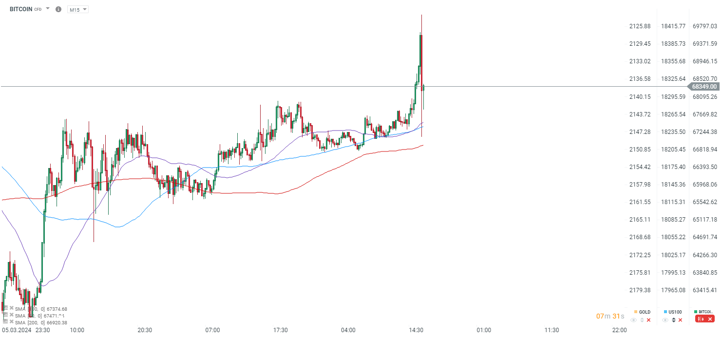 Bitcoin sta raggiungendo il livello di 70.000 dollari, anche se alcuni hanno ipotizzato che questo livello non sarà raggiunto prima della fine di marzo. L'aumento del prezzo del Bitcoin è motivato non solo dall'afflusso di fondi negli ETF, ma anche dall'aspettativa dell'halving o anche dalla debolezza del dollaro USA. Recentemente si è parlato anche della restituzione dei portafogli congelati per anni, che teoricamente potrebbero rappresentare una minaccia per la stabilità di questa criptovaluta se una grande quantità di Bitcoin dovesse essere immessa sul mercato.
