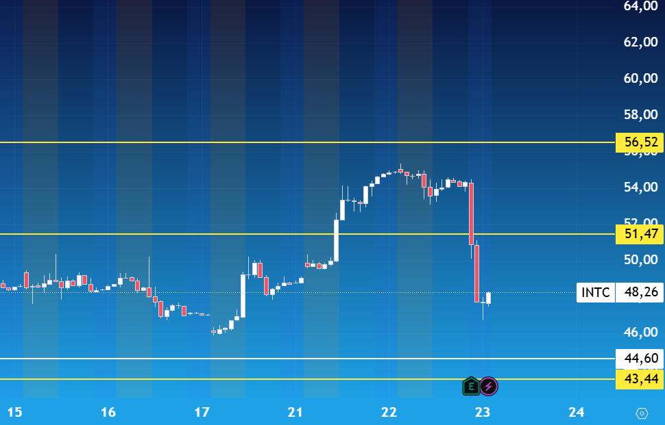 Il Ribasso in afterhours di Intel dopo la trimestrale - Fonte: TradingView