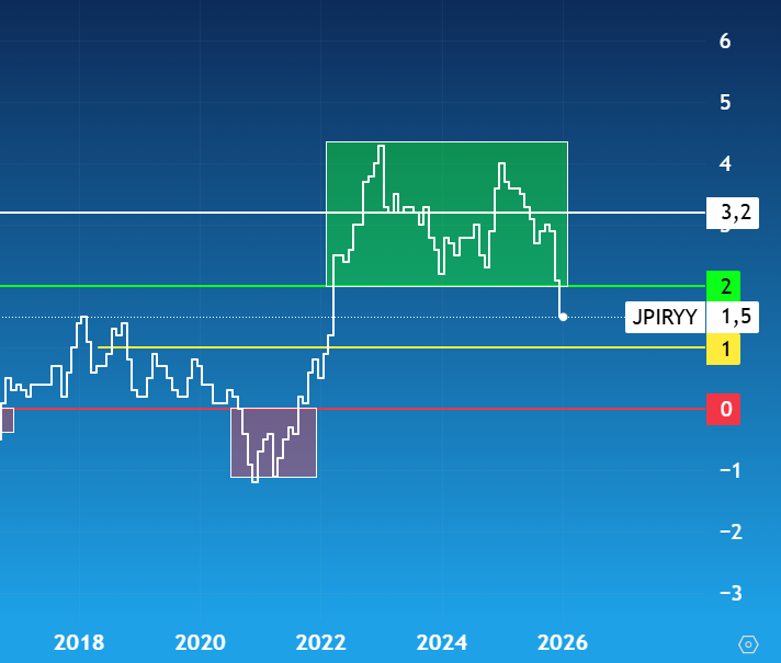 Inflazione giapponese e il forte calo a 1,5% - Fonte: TradingView