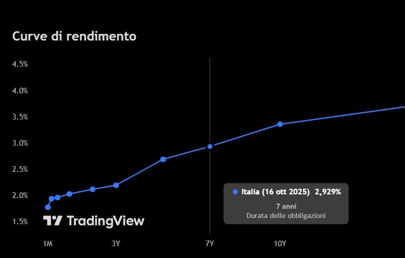 Rendimento del BTP a 7 anni sul secondario al 2,93%, inferiore a quello medio del Btp Valore - Fonte: TradingView - Studio: David Pascucci - XTB